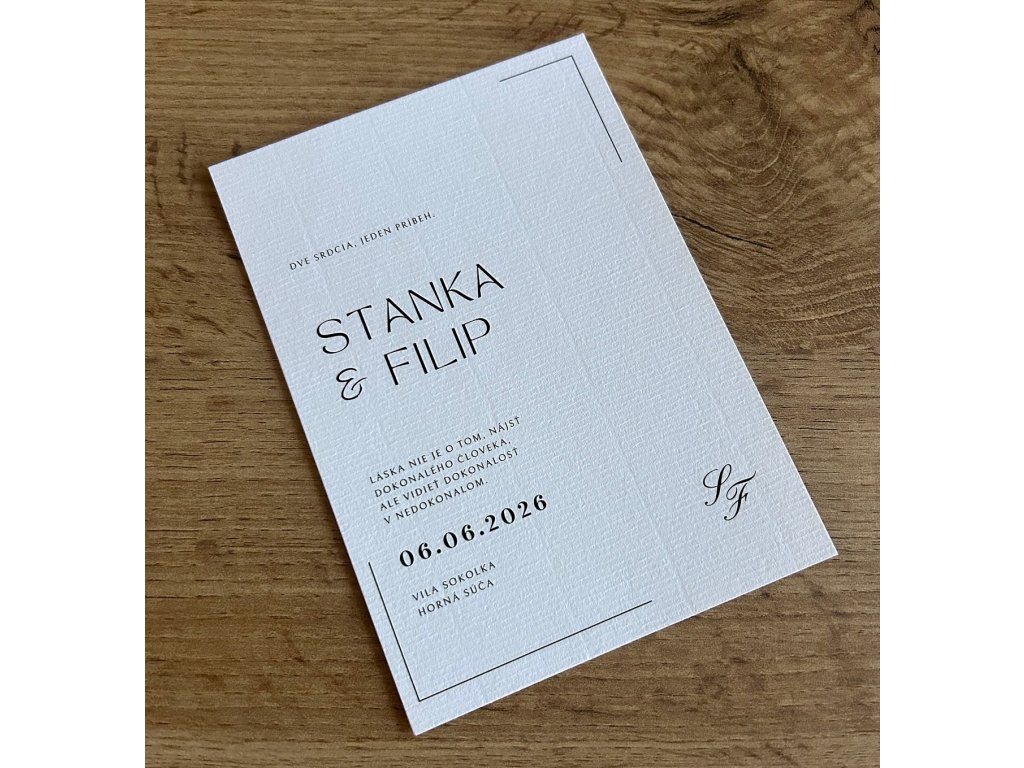 Svadobné oznámenie Pure je minimalistické a moderné svadobné oznámenie pre páry, ktoré milujú čistý dizajn a nadčasovú eleganciu.