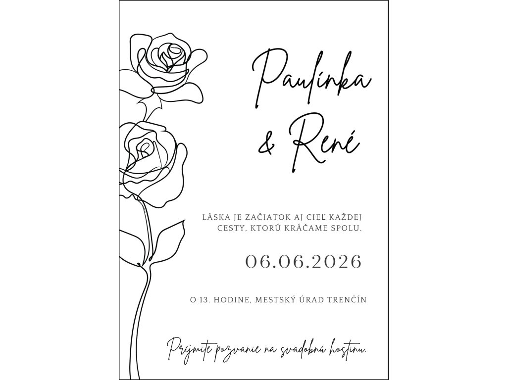 originálne svadobné oznámenie s ilustráciou ruže